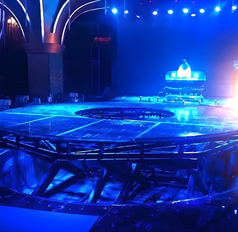 液压升降舞台也叫舞台升降机专门安装在舞台上,用于舞台升降及旋转叫舞台升降机。有升降、旋转、倾斜等多种功能,控制采用自锁、互锁、行程开关、机械限位、液压防爆等保护措施。